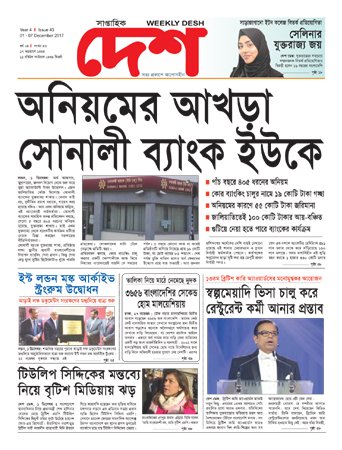 প্রচ্ছদ প্রিন্ট ভার্সন Issue 43: Year 04: 01-07 December 2017 Issue 43: Year 04: 01-07 December 2017 প্রকাশিত হয়েছে : ১২:০৪:৪৬,অপরাহ্ন ০১ ডিসেম্বর ২০১৭ | সংবাদটি ৬৫২ বার পঠিত WeeklyDesh 04-43 Low