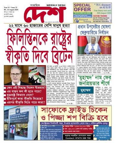 প্রচ্ছদ প্রচ্ছদ Issue 23. Year 12. 08-14 August 2025 Issue 23. Year 12. 08-14 August 2025 প্রকাশিত হয়েছে : ০৭ আগস্ট ২০২৫ WeeklyDesh 22-12yr
