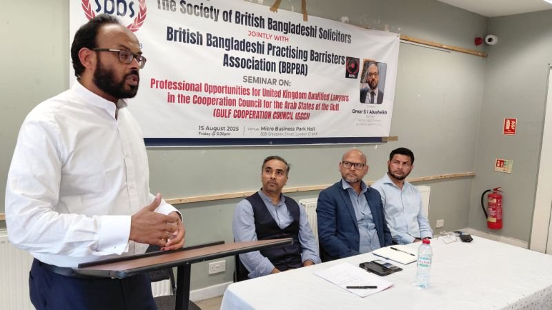 পূর্ব লন্ডনে সেমিনারে বিশিষ্ট আইনজীবী ড. ওমর আবাশেইখ : গালফ অন্তর্ভূক্ত দেশগুলোতে যুক্তরাজ্যের আইনজীবীদের আইনী সেবার ব্যাপক সুযোগ রয়েছে