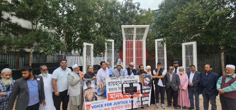 এসআই আকবরকে গ্রেফতার ও রায়হান হত্যার বিচারের দাবিতে পূর্ব লণ্ডনে মানববন্ধন